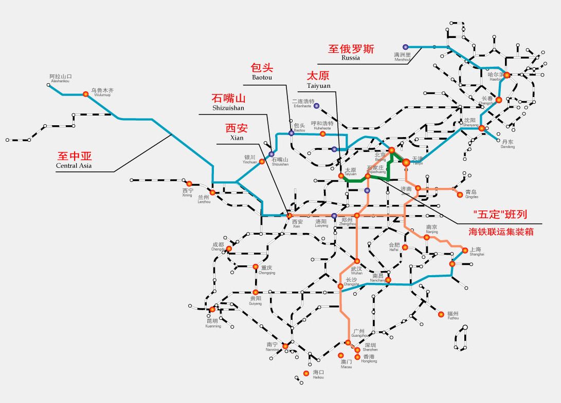 目前我司可接直營(yíng)站點(diǎn):天津、石家莊、上海、鄭州、合肥。途徑俄羅斯、白俄羅斯、波蘭、比利時(shí)、德國(guó),并可完成中途鐵路轉(zhuǎn)卡車聯(lián)運(yùn)到門服務(wù)。